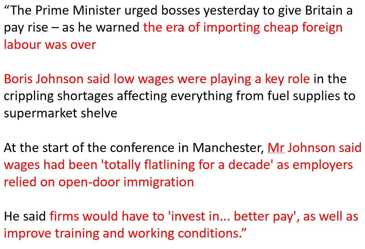 Britain’s prime minister Boris Johnson stated the following, using the Tory party’s annual conference as forum: