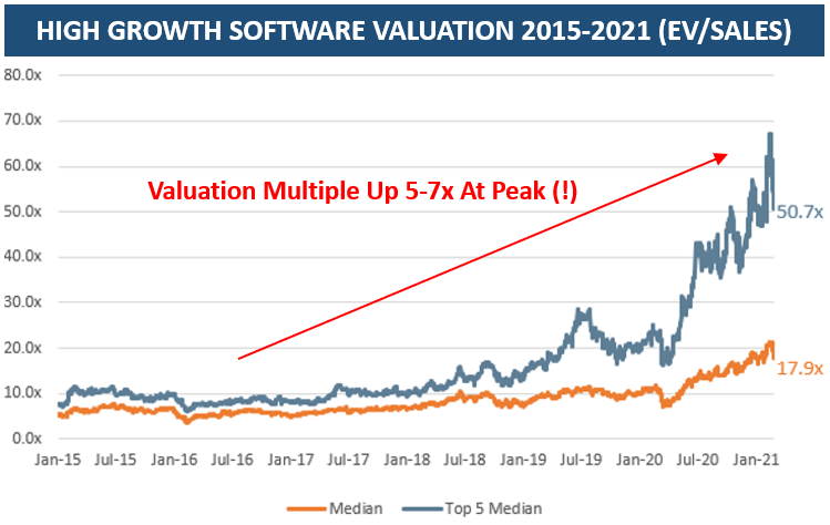 The effect was more pronounced the further an asset was out on the risk curve and the further in the future its cash flows. High-Growth Tech valuation levels grew exponentially: