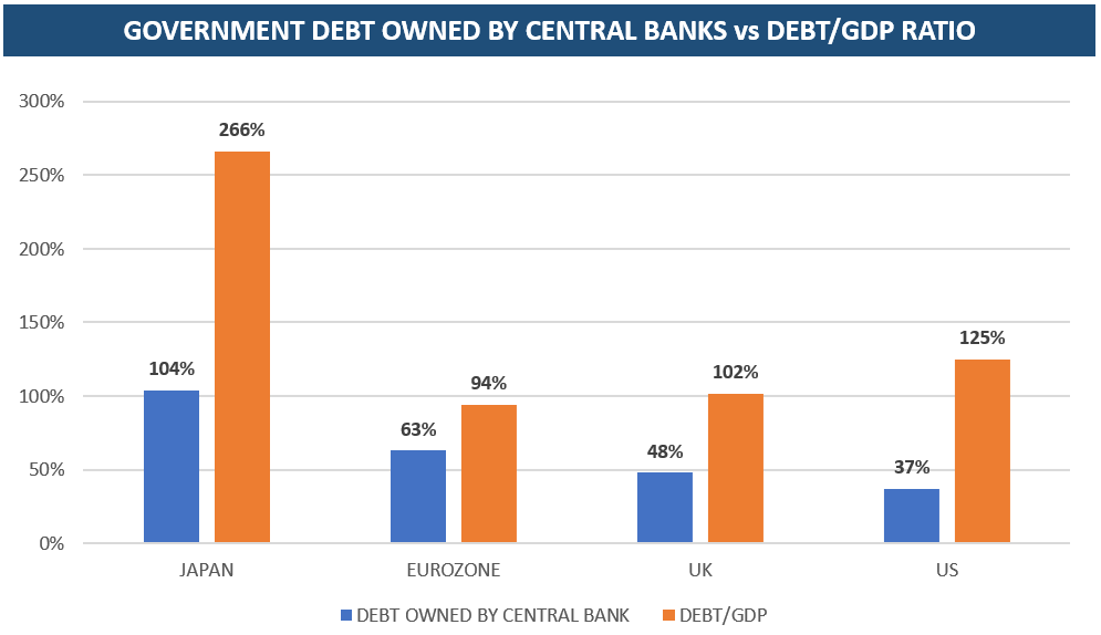 Direct - Central Bank balance sheets expanded by $22tr, making them the largest holders of government debt, in some cases even the majority holder. Many governments are overlevered, who would have bought this debt if not Central Banks?