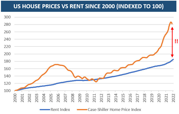 US house prices more than doubled since 2008, and rose much faster than rents, which are driven by wages. The picture is even more extreme in other countries