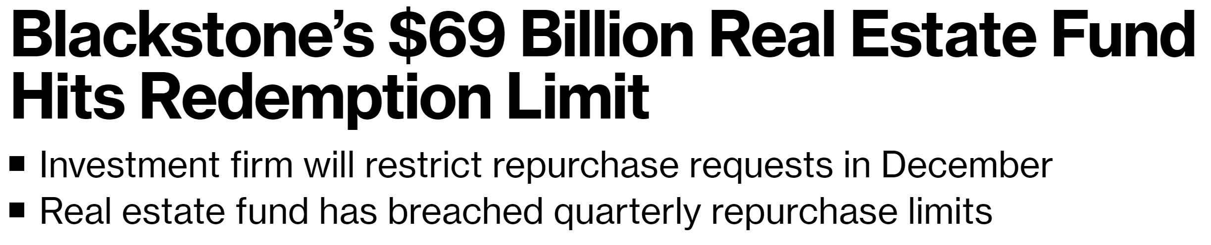 Yesterday, we got an eery reminder of the storm brewing in private markets. Blackrock limited redemptions from its juggernaut Real Estate fund “BREIT”