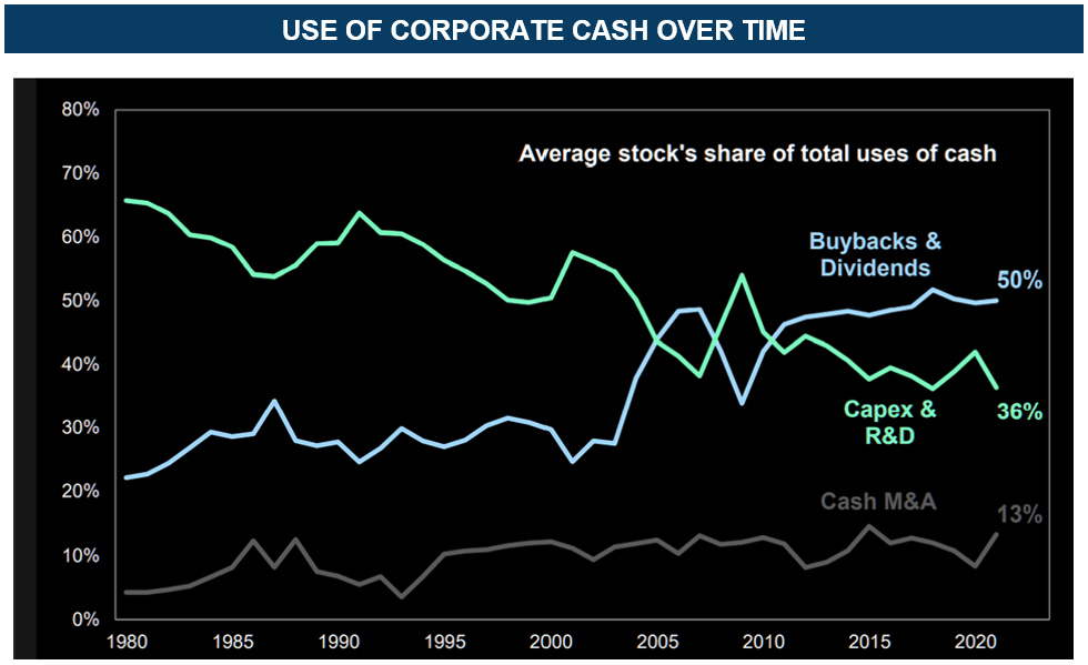 The beauty of debt is that it is easy, and this fact shows in corporate investment decisions. Management teams, whose compensation is often tied to earnings per share (or equivalents) could boost these earnings either via the hard way - with ingenuity required for Capex and R&D. Or they could choose the easy way - lever up and use proceeds for buybacks and dividends