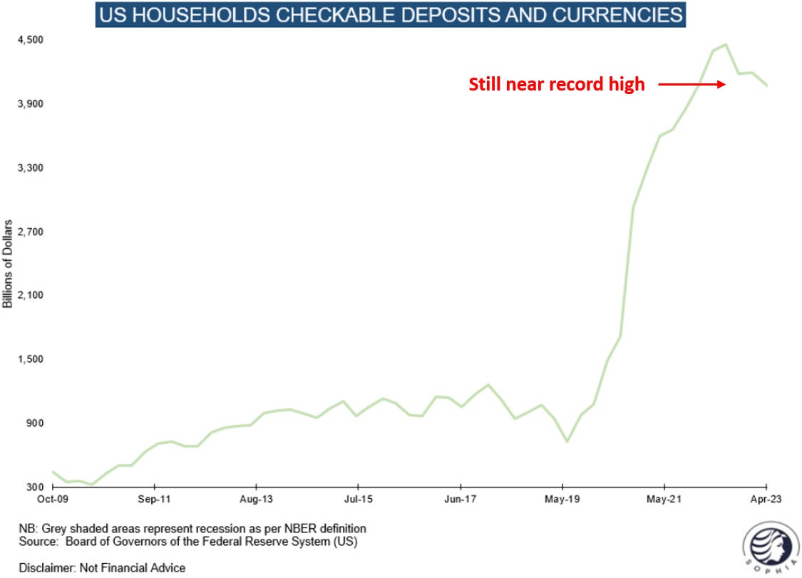Household deposits remain at historically high levels, suggesting plenty of funds available to spend