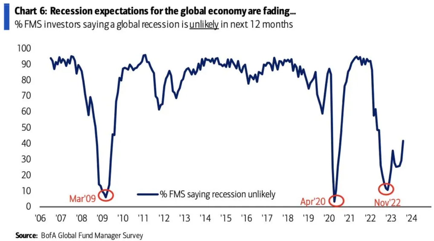 So what to think? With Reflexivity in mind, I go to what is probably the biggest tell of all as to whether growth will surprise to the upside or not - the market’s expectation of a recession within the next 12 months