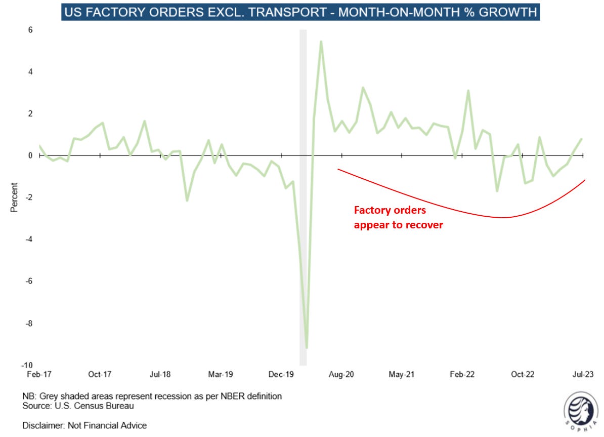 More so, the apparent upturn in US Manufacturing that I’ve been going on about for a while is also visible in hard data, such as US factory orders