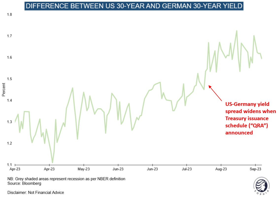 However, Australia is a niche economy with many idiosyncratic drivers. Comparing the US to Germany’s 30-year interest rate indeed shows some deviation, exactly around the time the Treasury supply calendar for Q3 was communicated to the market